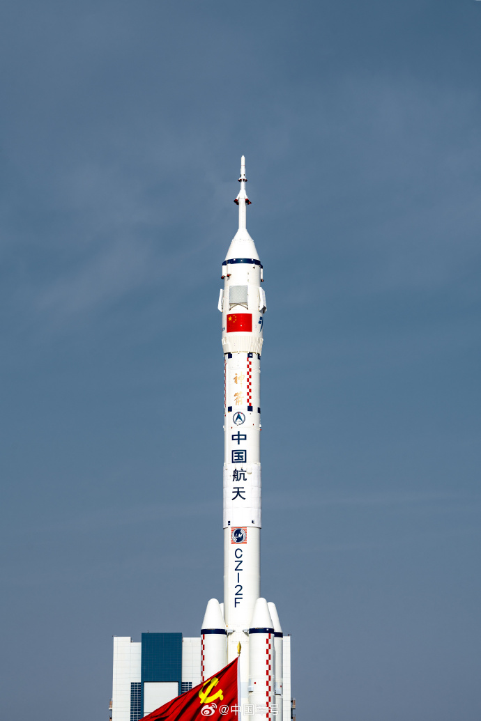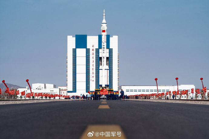 今天,神舟二十一号载人飞船与长征二号F遥二十一运载火箭组合体已转运至发射区。