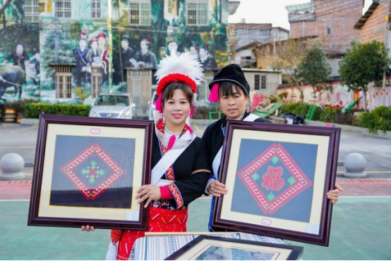 文艺赋能助力绣娘实现居家就业,推动瑶绣从传统手工艺向初具规模的乡村特色产业迈进。